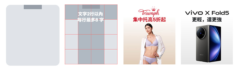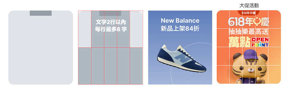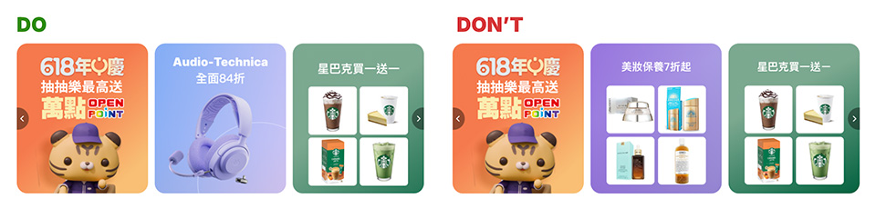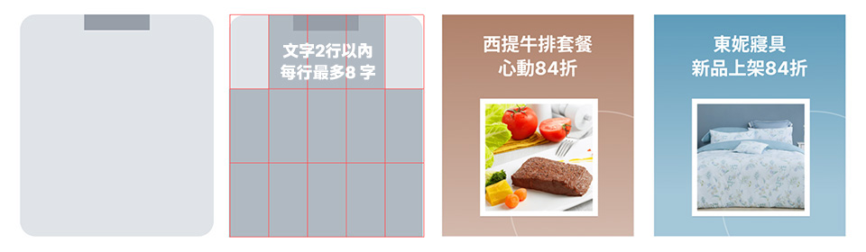 - 文字區域:不可放商品、裝飾性元素,以提高易讀性。
