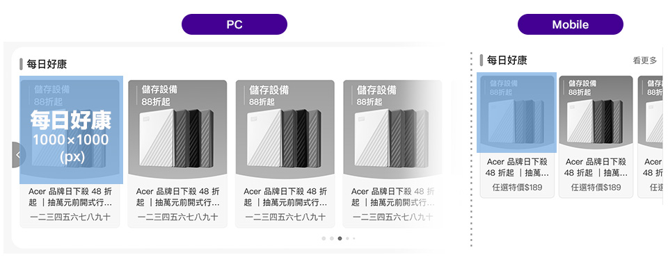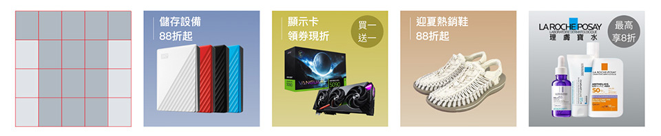 - 建議使用去背商品圖+簡易背景+簡易文案,商品數1~3品。