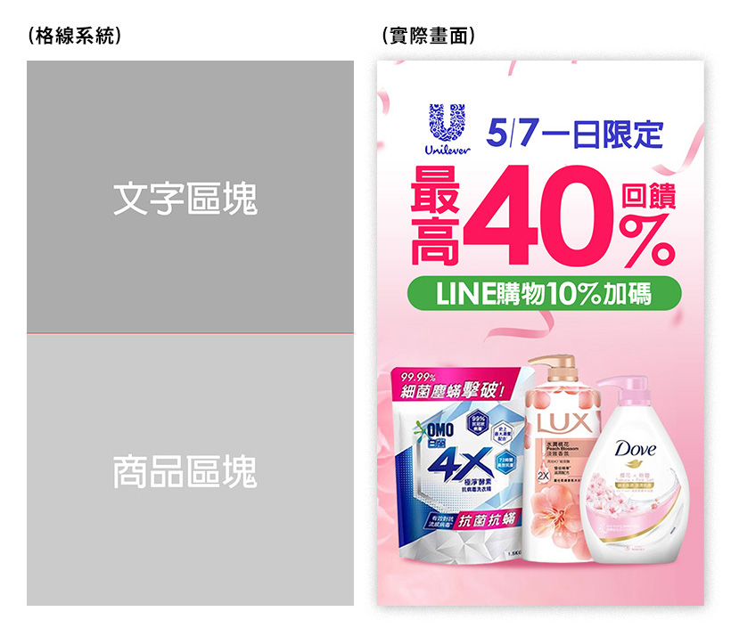 為了營造便於網友瀏覽的購物環境,在短時間內瀏覽商品與文案以增加銷售機會,請依循格線系統規範做合適之編排。